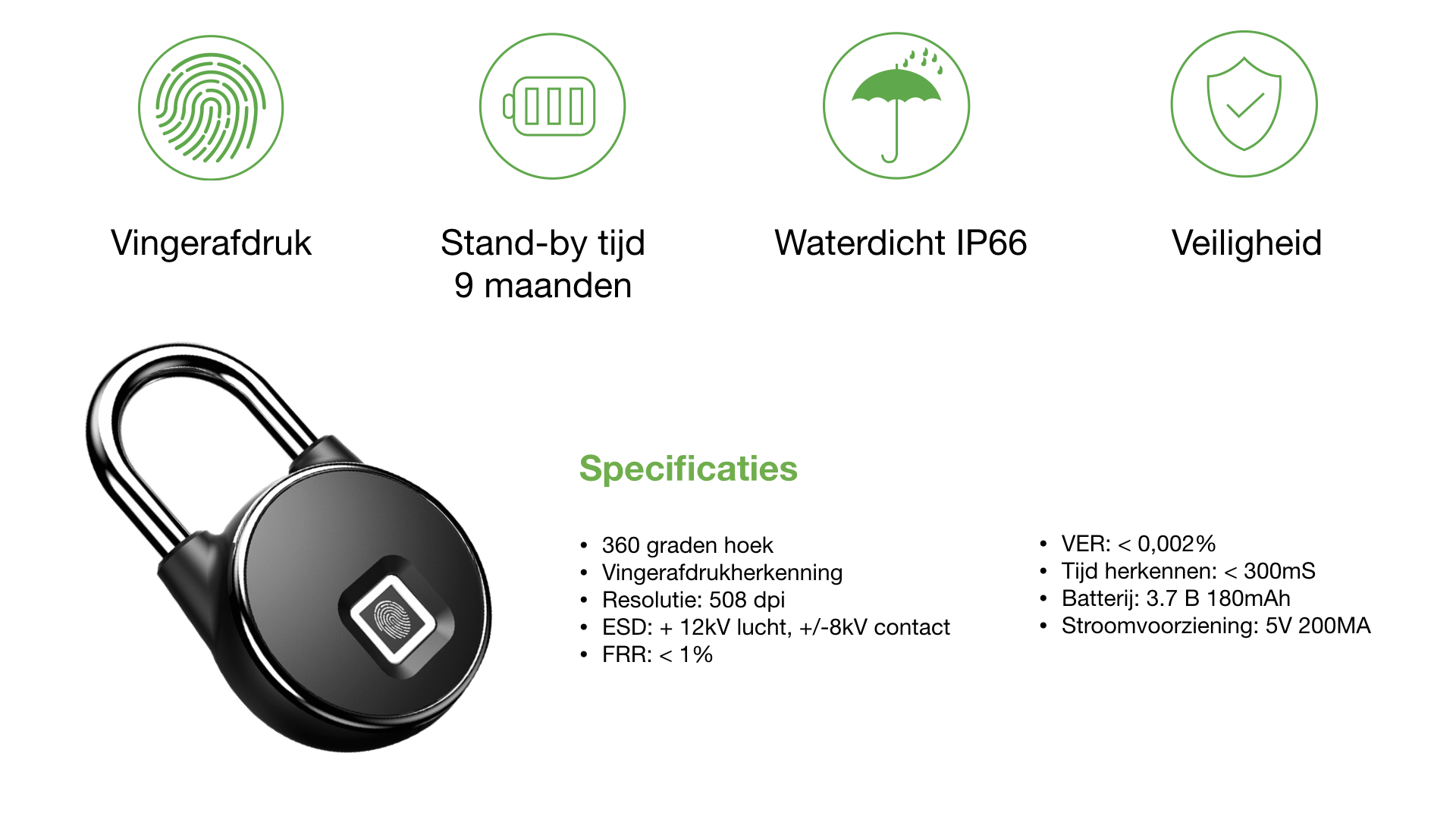 De FPL-22 van Amiko Home is een veilig en betrouwbaar vingerafdruk slot. Uw vingerafdruk is uw wachtwoord, slechts één aanraking opent uw slot! Met een stand-by time van 9 maanden hoeft u zich geen zorgen te maken over de veiligheid van uw waardevolle spullen. Toepasbaar op bijvoorbeeld uw koffer, bagage, tas, magazijn, deur, kast, vracht enz.