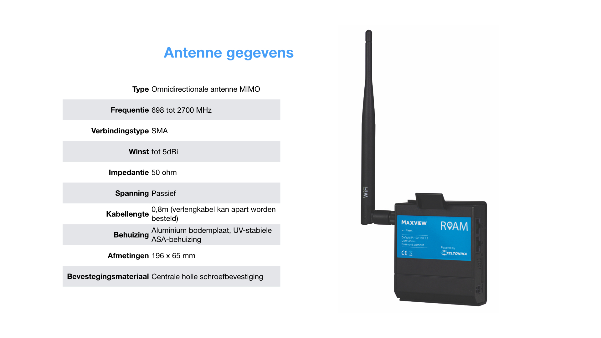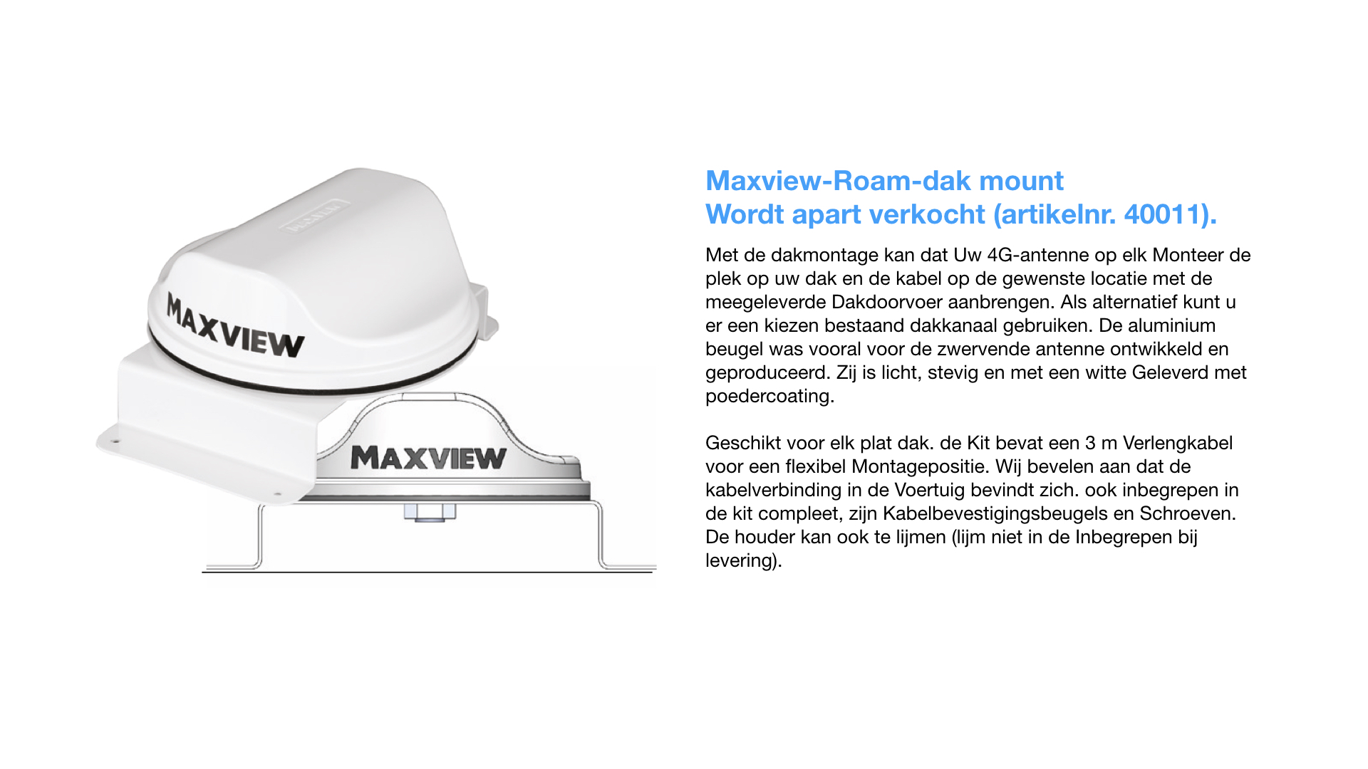Met deze Roam van Maxview kunt u tijdens uw reis gemakkelijk internet verbinding maken of uw eigen hotspot creeren, zelfs op afgelegen en landelijke bestemmingen. Deze antenne is ontworpen om het 3G/4G-signaal te maximaliseren. In combinatie met de Roam-router creëert dit een betrouwbare en veilige WiFi-hotspot voor uw voertuig.
