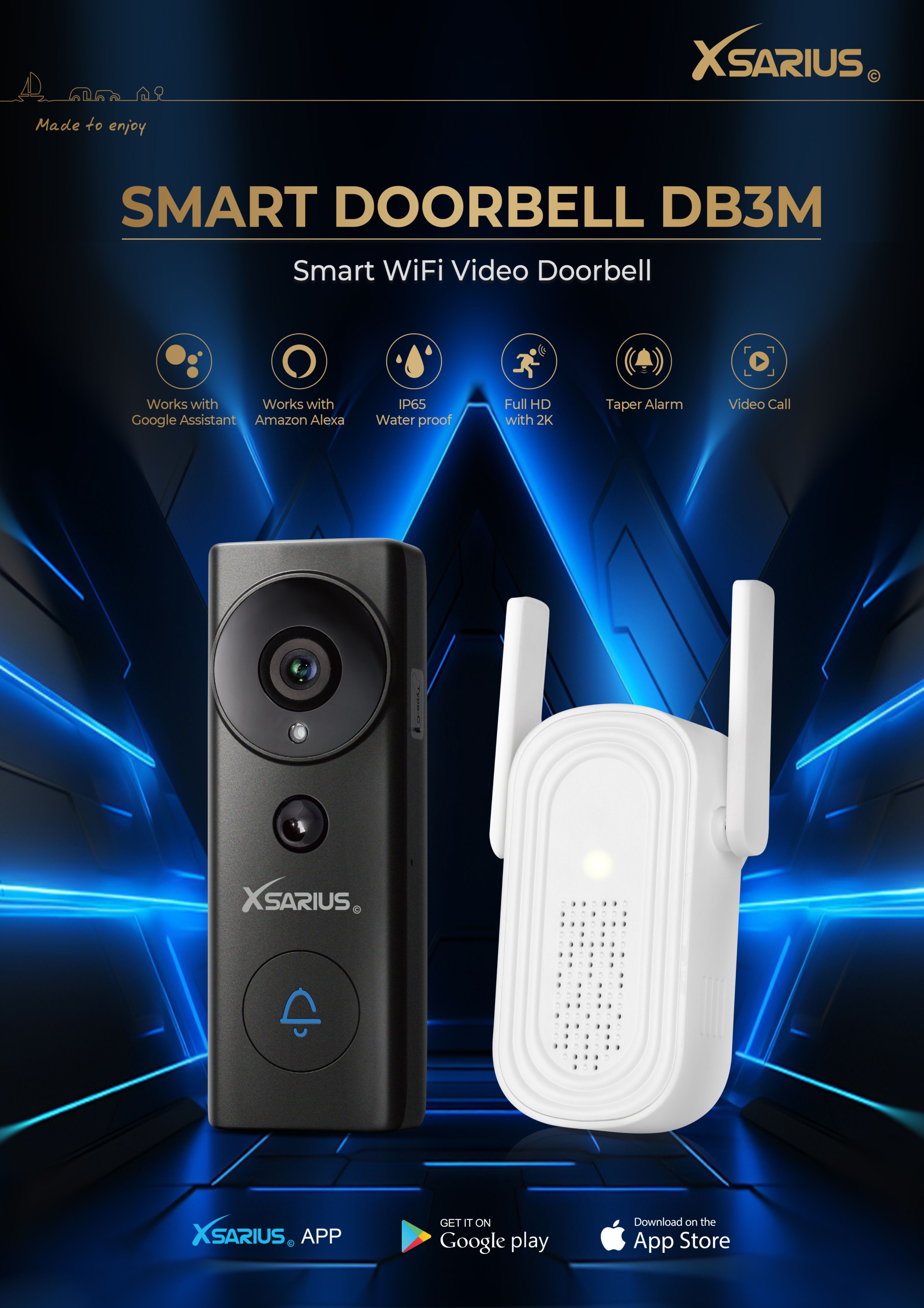 De Xsarius Smart Doorbell DB3M is een krachtige en intelligente WiFi videodeurbel die veiligheid, gemak en connectiviteit samenbrengt in één stijlvol en waterdicht ontwerp. Dankzij de haarscherpe 1080p Full HD videokwaliteit, tweerichtingsaudio, gezichts- en bewegingsdetectie, en slimme meldingen via de app sta je altijd in verbinding met je voordeur – waar je ook bent.